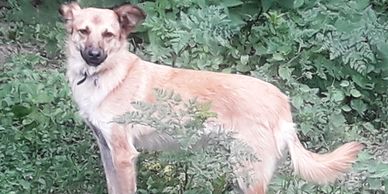 Ellie was kept inside a house as a puppy and never saw the light of day, she learned nothing about play and puppy hood and had no food , water nor anyone to care for her. She is a Larger dog, but Tall and leggy and not too heavy. At approximately 18 months old she still young and can be quiet energetic She is a kind dog, both with other animals and humans alike. Ellie is a "talkie" dog and will engage you with mini whines and funny noises when you approach her. She loves company and will really grow in confidence and personality in a loving home.